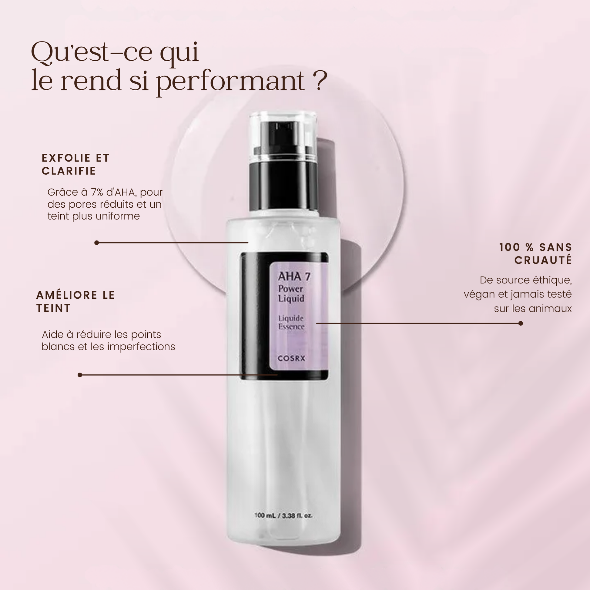 Glycolic acid gently exfoliates dead cells, revealing brighter, smoother skin. Thanks to its gentle but powerful formulation, it is suitable for all skin types, even the most sensitive.
