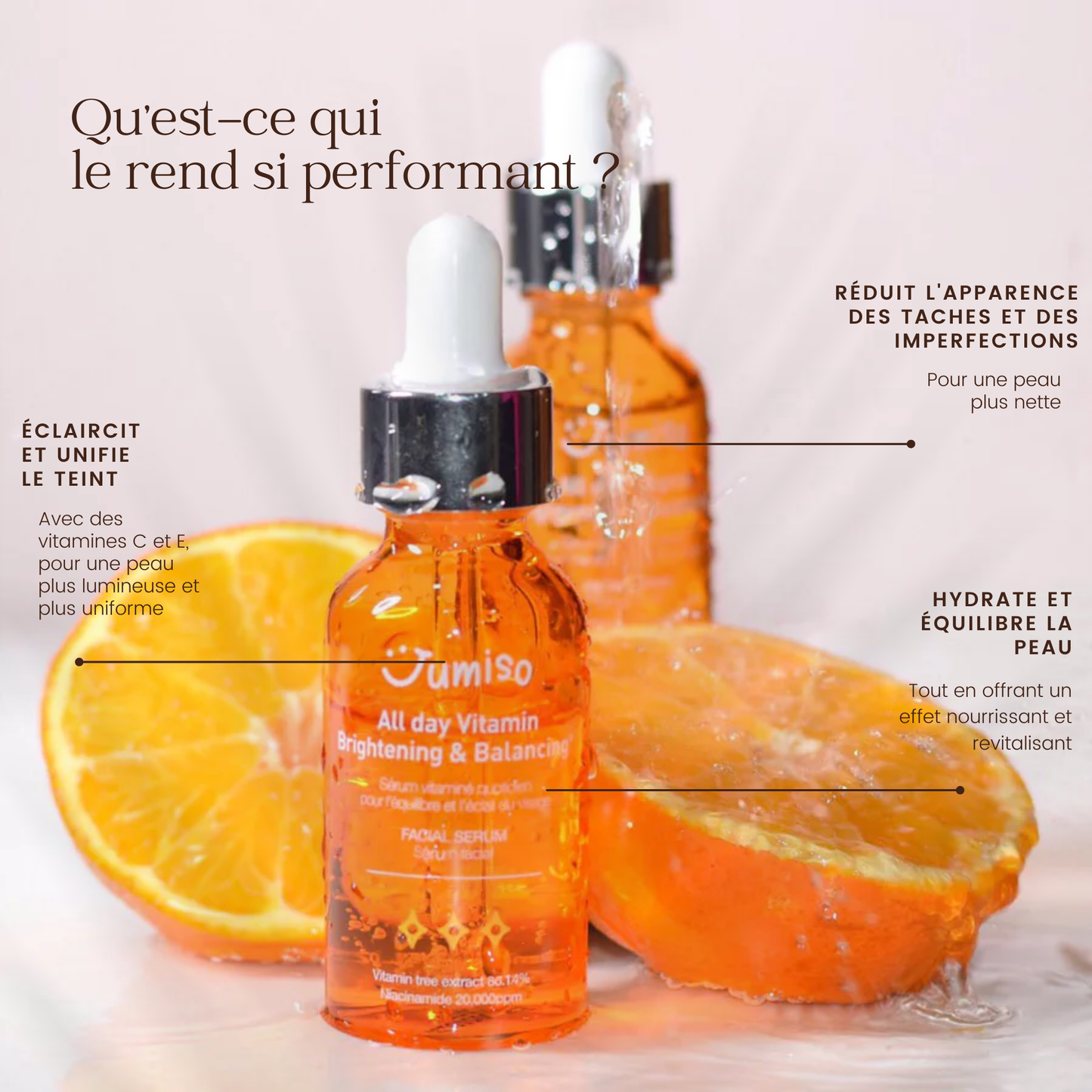 Le sérum visage vitaminé éclaircissant et équilibrant JUMISO est un soin visage puissant, conçu pour illuminer et revitaliser votre peau.